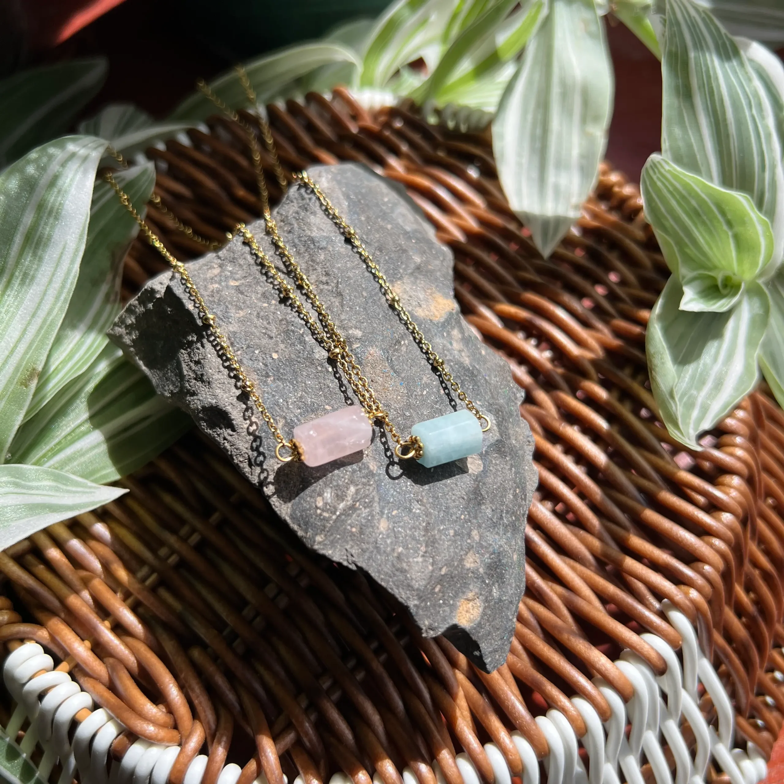 Cadena de Cuarzo Rosa o Aguamarina en Acero Inoxidable