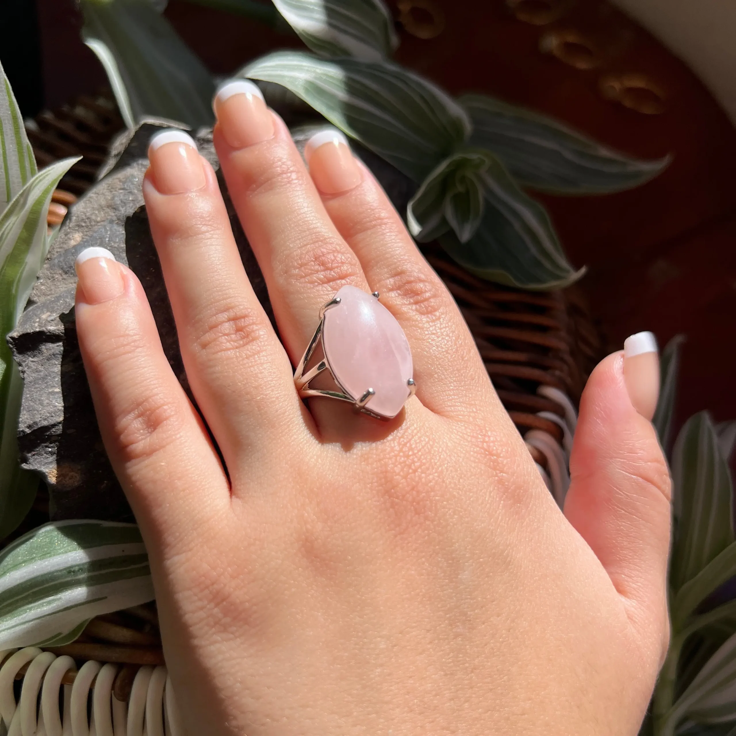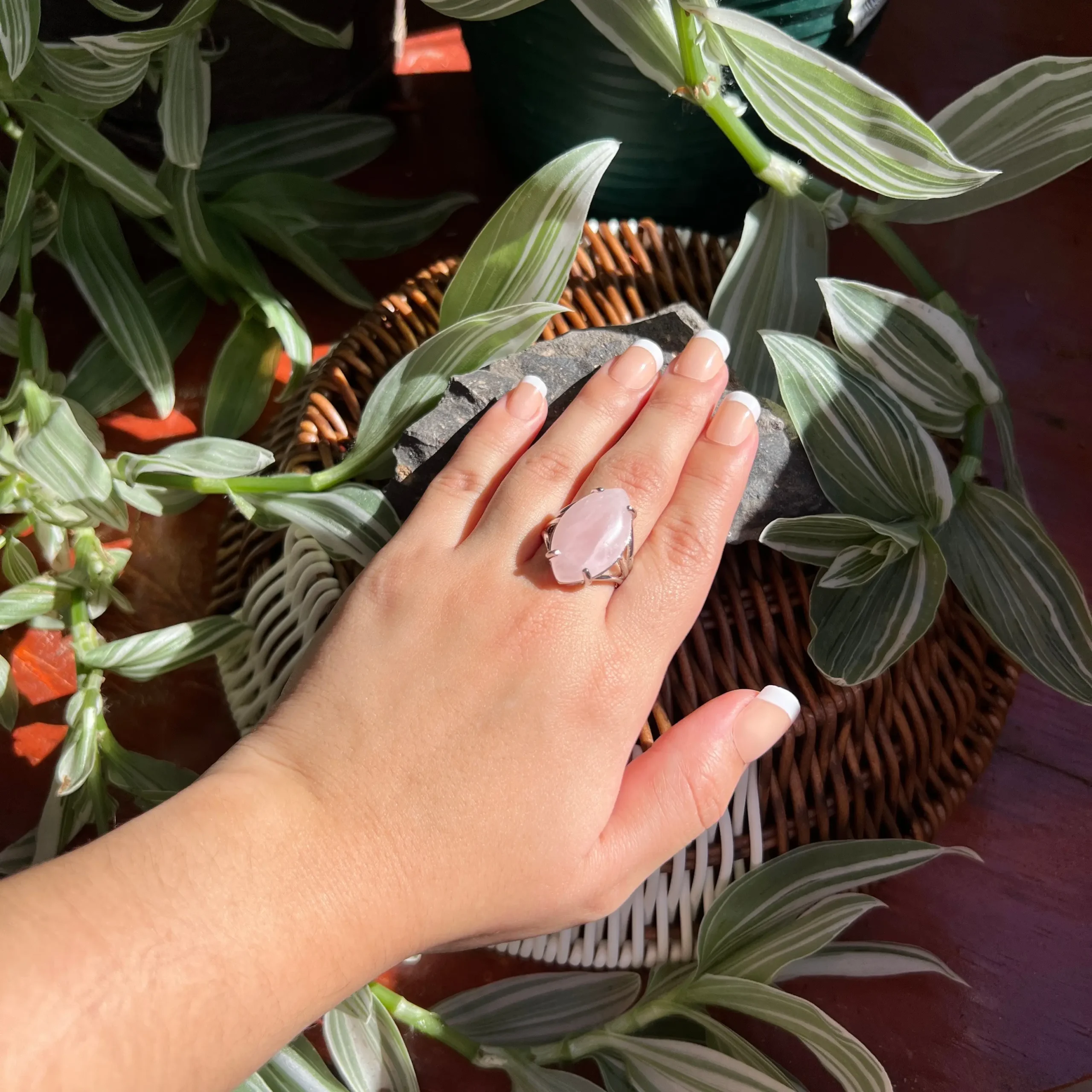 Las piedras son 100% naturales, por lo que cada cuarzo rosa puede variar ligeramente en color, vetas, transparencia y forma. Estas variaciones son parte de su autenticidad y hacen que tu anillo sea único.