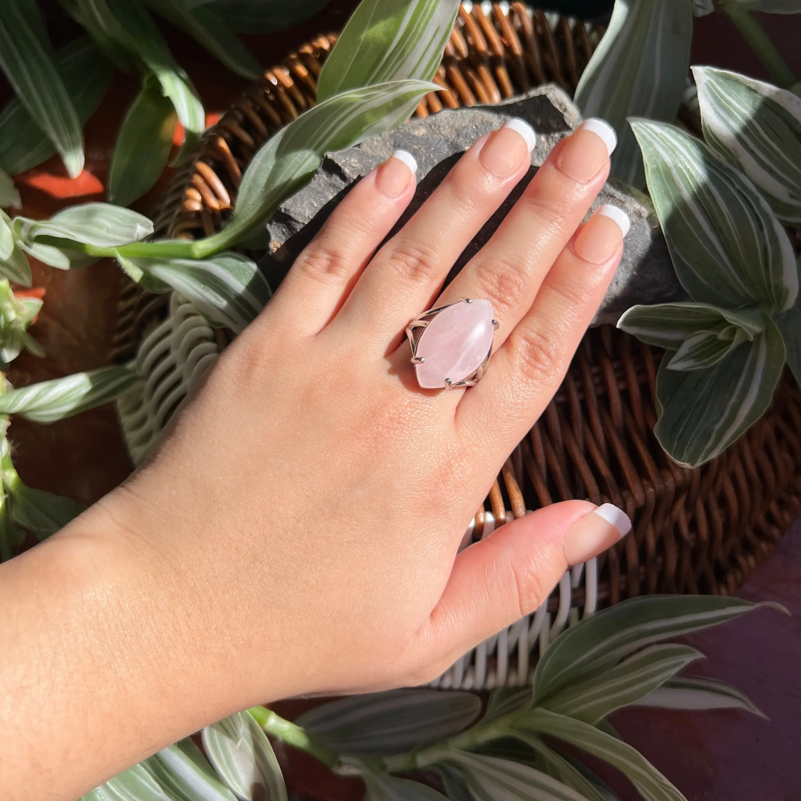 Dale a tu look un toque romántico y lleno de intención con este anillo ajustable de cuarzo rosa, una pieza que combina estética bohemia con un significado emocional profundo. La piedra, pulida en forma ovalada tipo “ojo”, destaca por su brillo suave y su tono rosado característico, ideal para usar a diario o regalar con propósito.