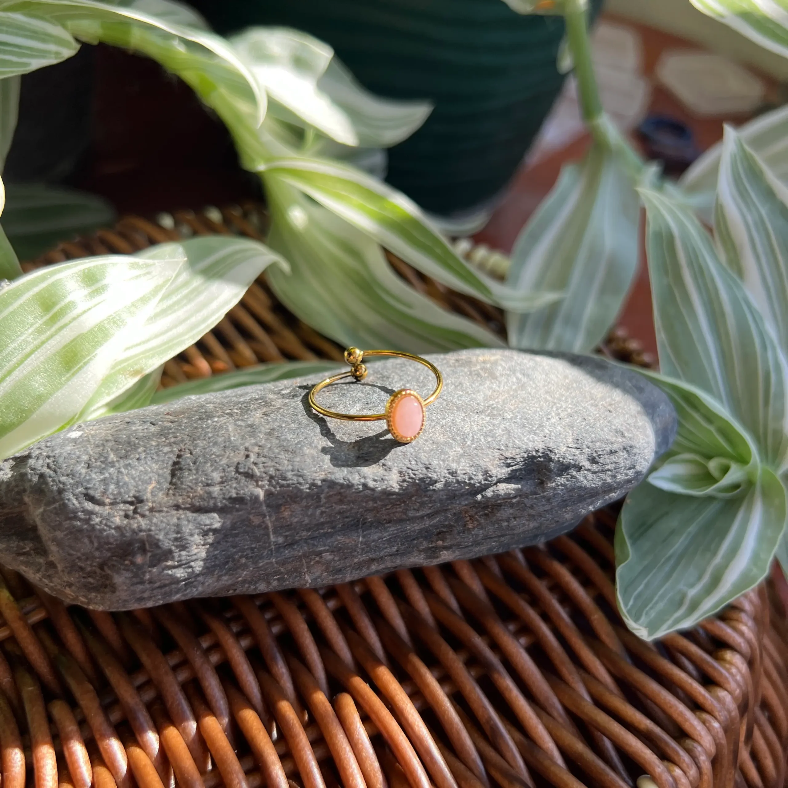 Las piedras son 100% naturales, por lo que cada pieza puede variar ligeramente en tono, vetas, brillo y forma. Estas variaciones son parte de su autenticidad y hacen que tu anillo sea único.