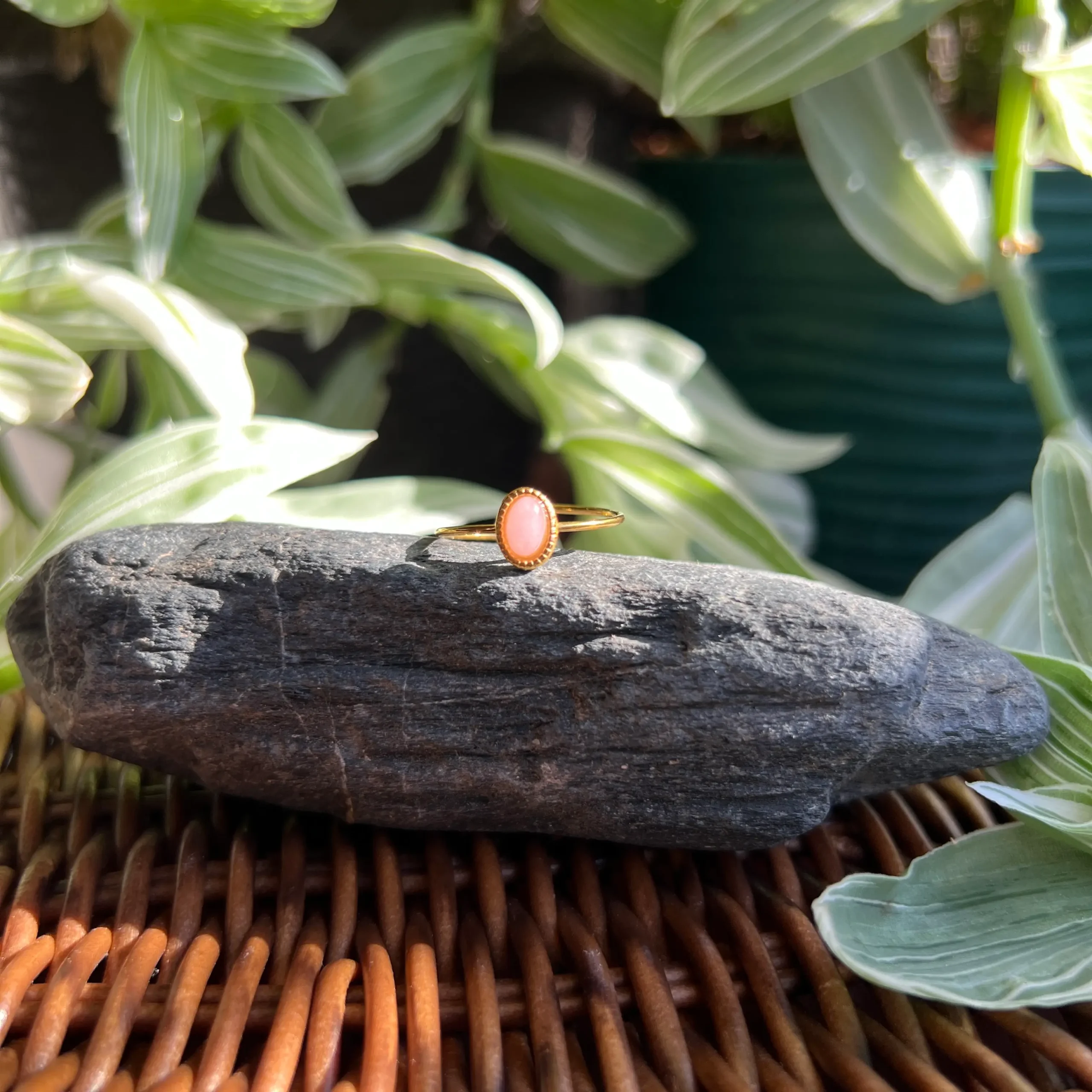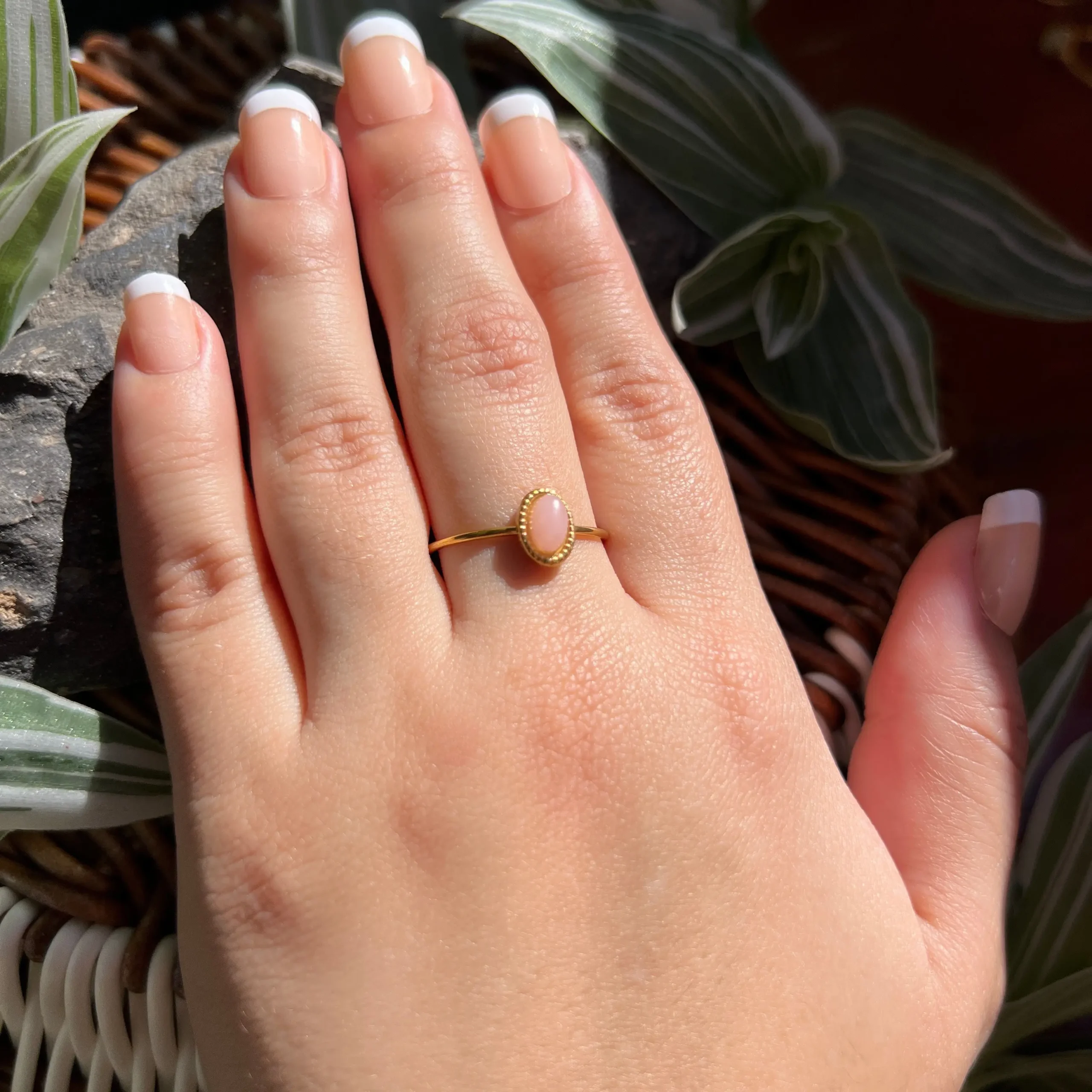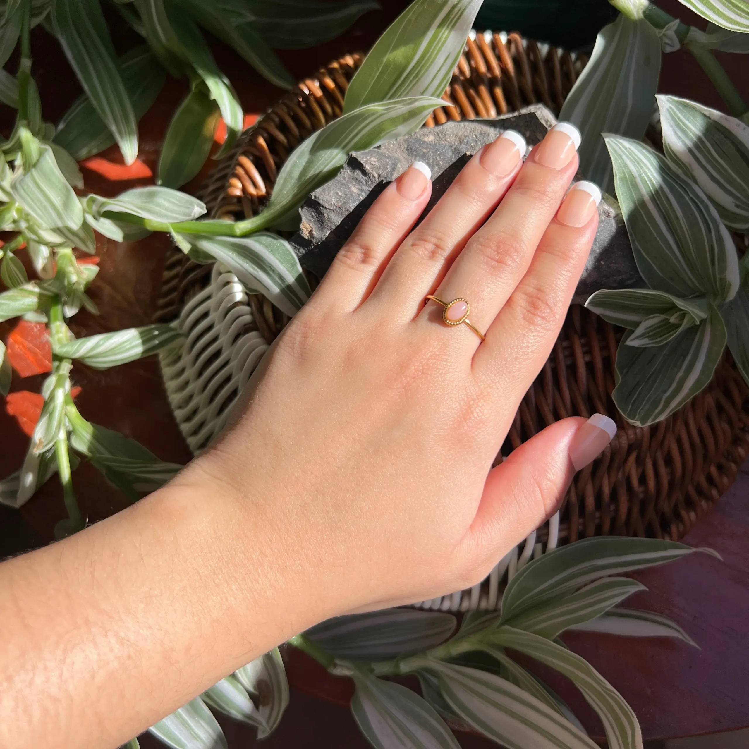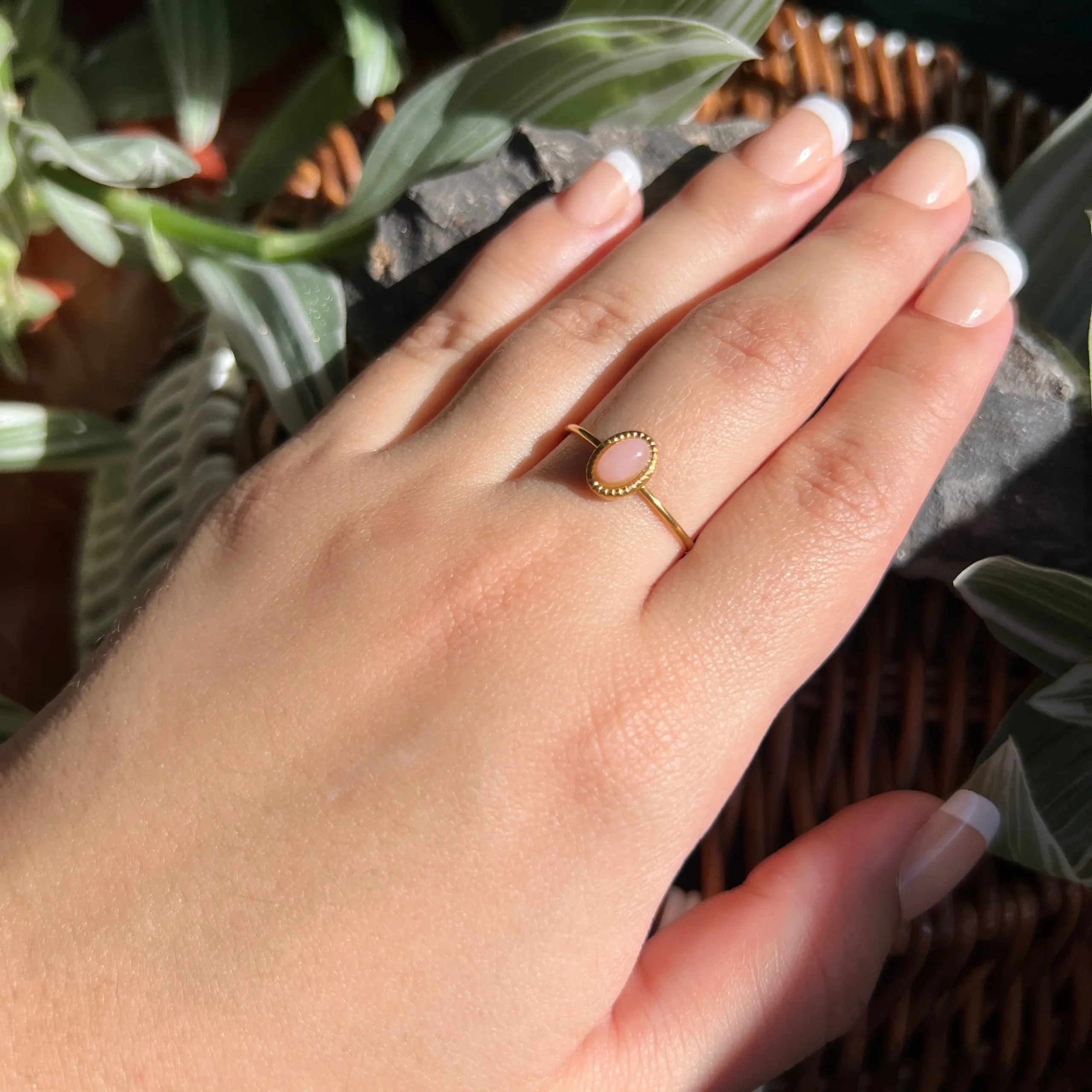 Las piedras son 100% naturales, por lo que cada pieza puede variar en tono, vetas, transparencia y forma. Esto hace que tu anillo sea único e irrepetible.