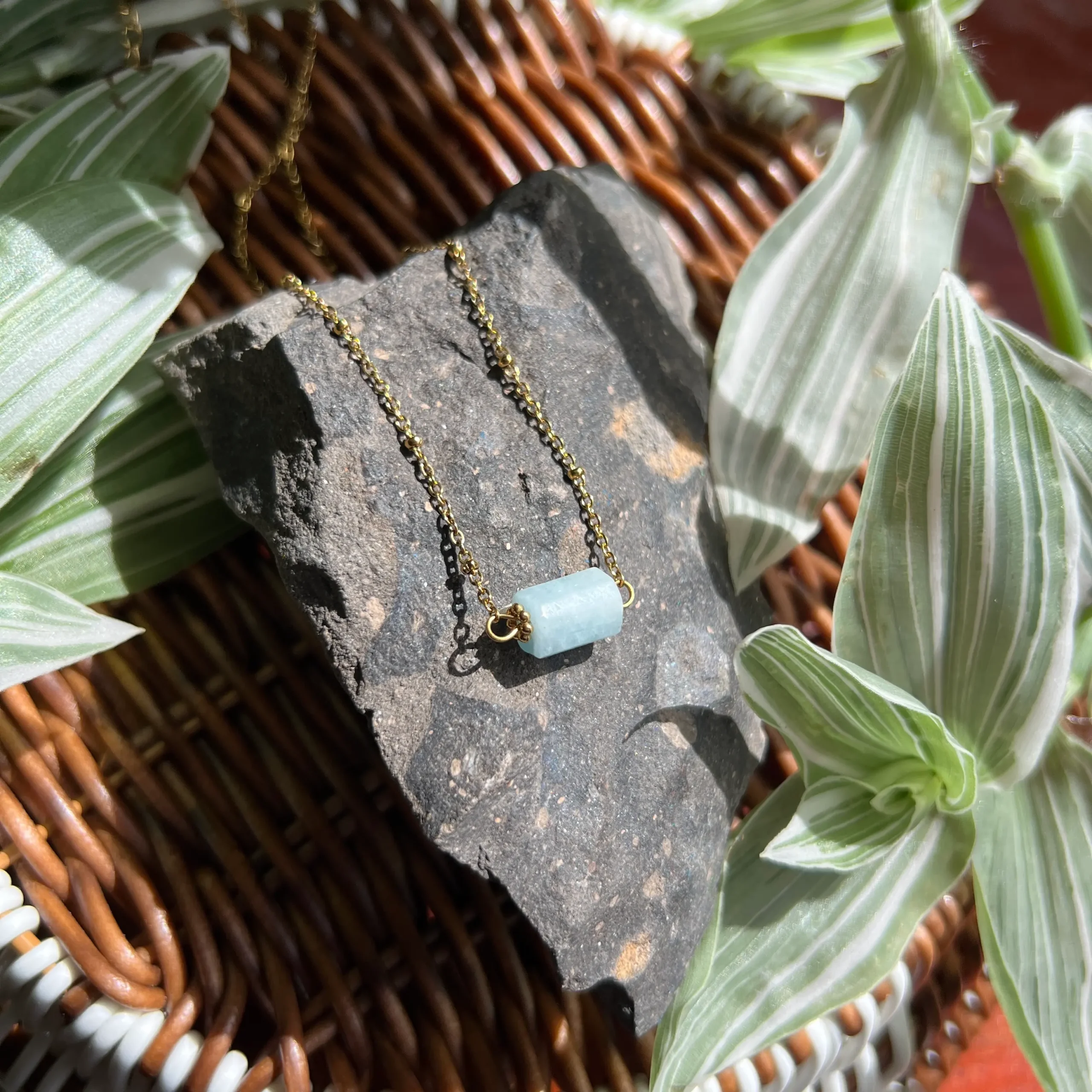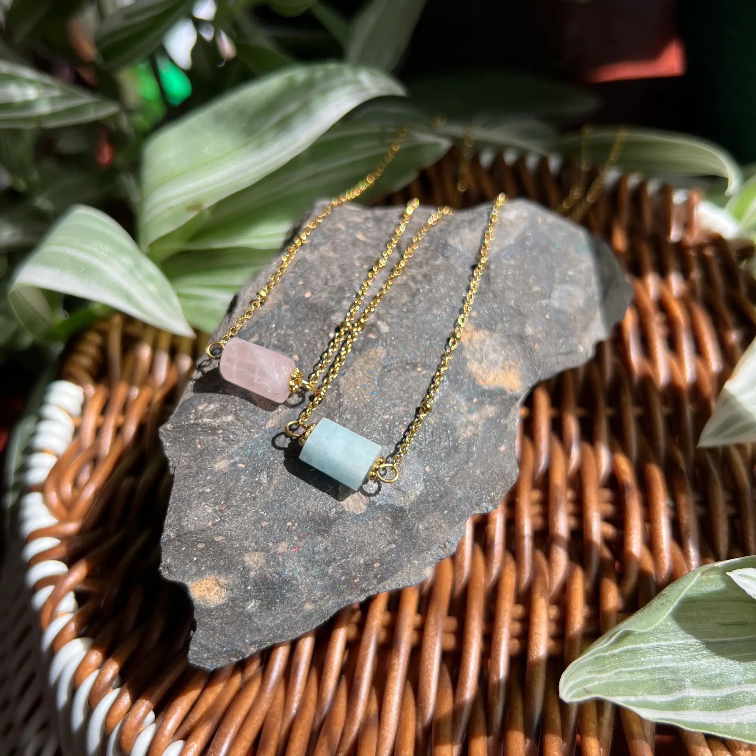 Las piedras son 100% naturales, por lo que cada collar puede variar ligeramente en tono, vetas, transparencia y forma. Estas variaciones son normales y hacen que tu pieza sea única.